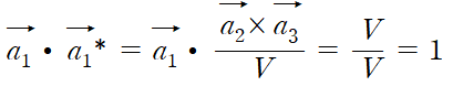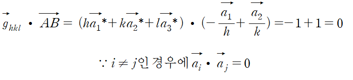 역격자 벡터의 정의에 의해 a_{1} 벡터와 g 벡터를 내적하면 h가 됩니다.