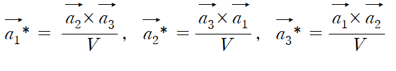 결정 격자의 기저 벡터를 a_{i} 그리고 역격자의 기저 벡터를 a_{j}* 라고 표시하겠습니다. 기저 벡터는 단위 벡터와 다르게 서로 다른 길이를 가질 수 있습니다.