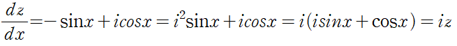 z=cosx+isinx 라고 가정합시다. z를 x에 대해 미분하겠습니다.