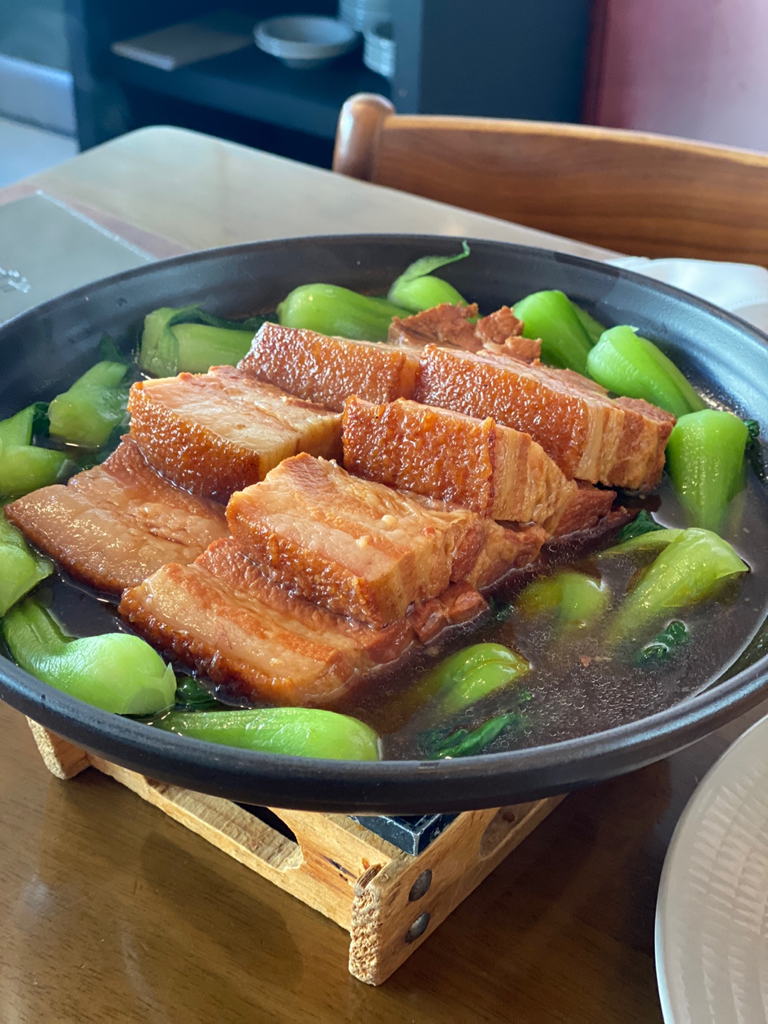 곧바로 동파육도 나왔다. 두꺼운 삼겹살과 청경채가 들어 있다. 오랜 시간 조리를 해서인지 비계 부분이 젓가락으로도 잘릴 정도로 굉장히 부드러웠다. 하지만 개인적으로는 많이 느끼했다. 청경채와 같이 먹어도 느끼함을 가릴 수 없었달까.. 개인적으로 지방이 포함된 등심 돈까스도 선호하지 않고 치킨도 느끼해서 반 마리 밖에 못 먹는 사람이라 그렇게 느낀 것 같다.