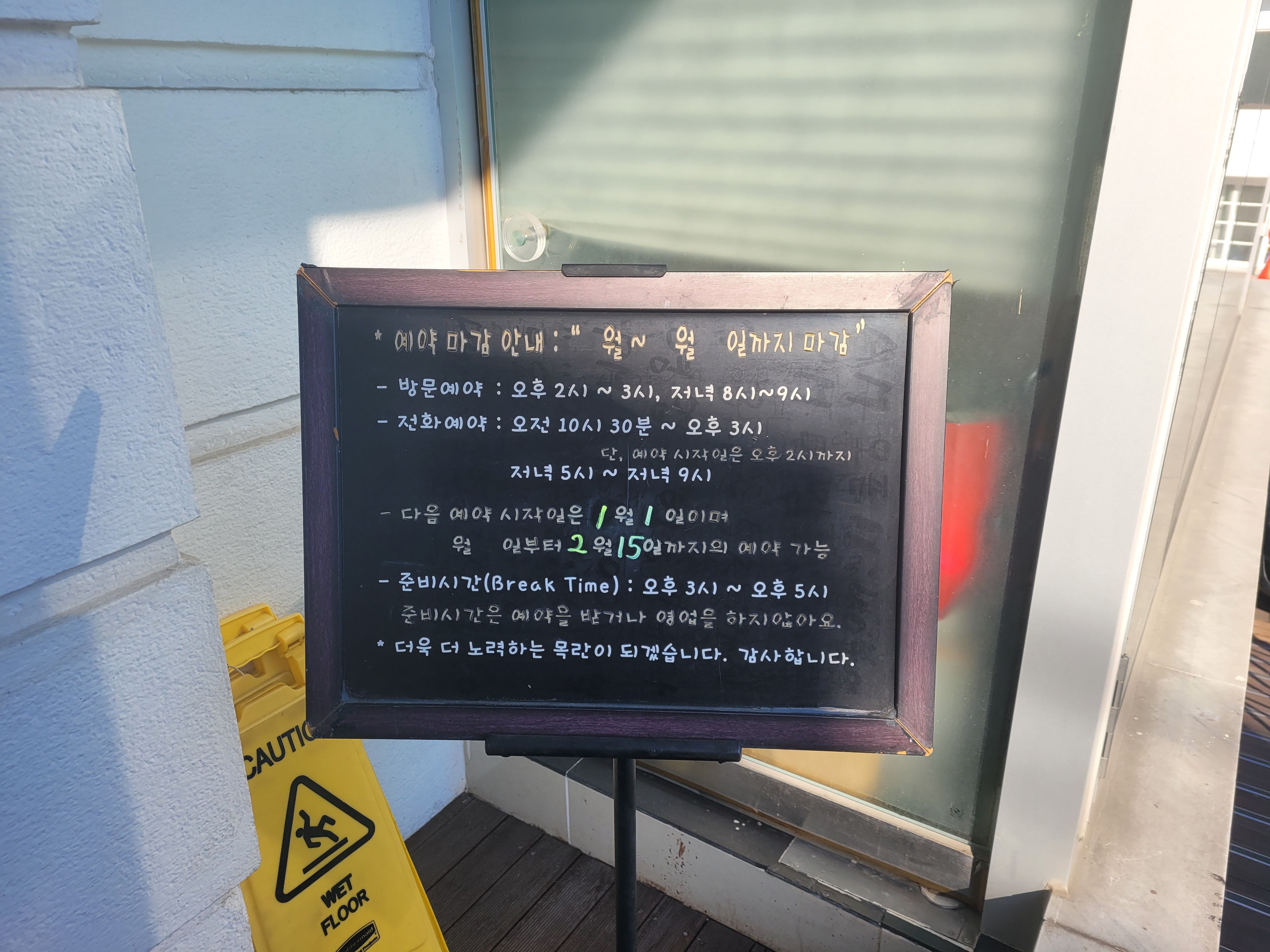 예약을 한 당일에는 안내 문자가 따로 오지 않는다. 예약일 4일 정도 전에 예약 확인 문자가 온다. 예약금이 따로 없는 업장이기 때문에 예약 확인을 한 번 더 받는 것 같다.