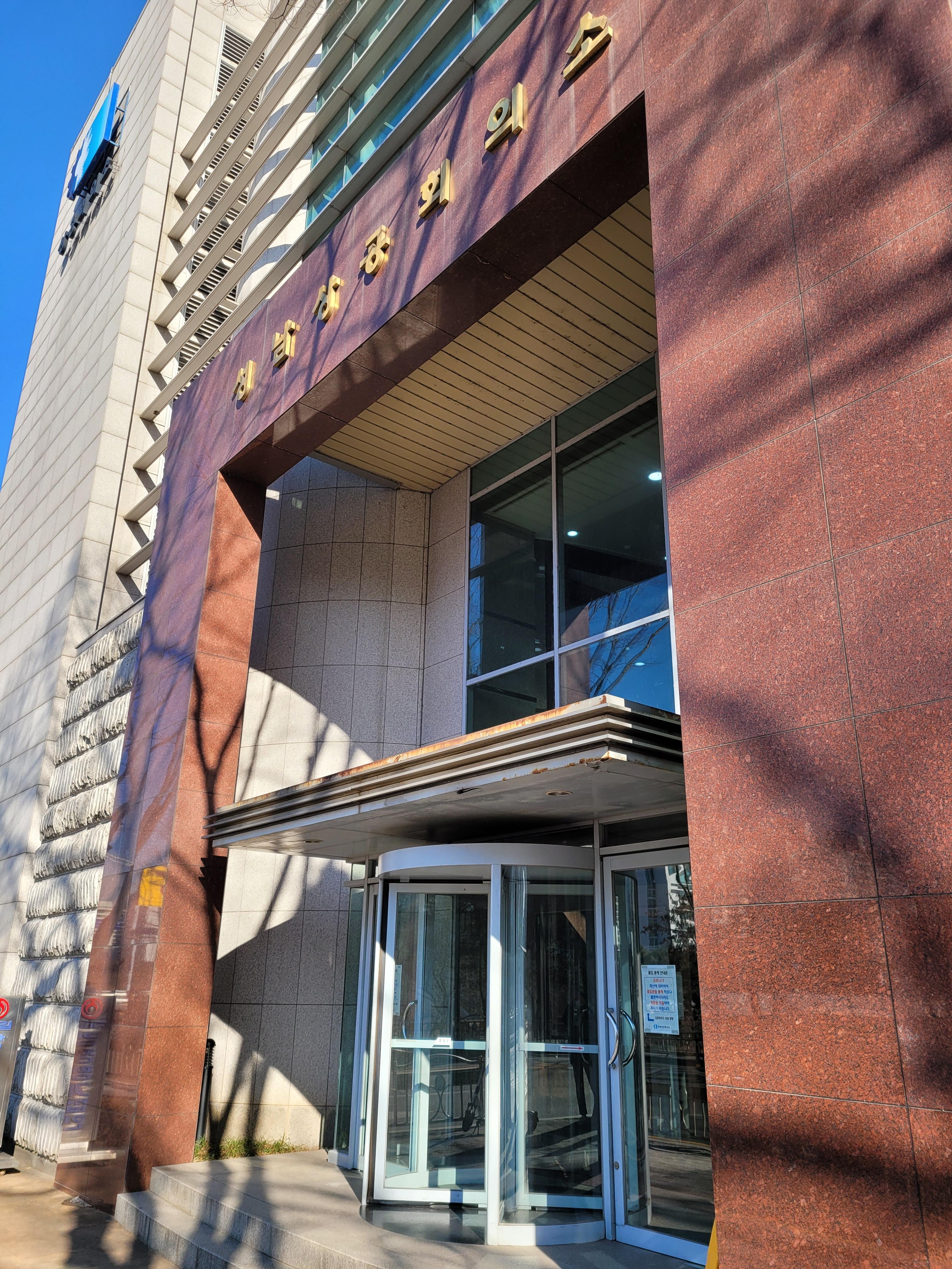 여기가 성남상공회의소 정문이다. 코로나 때문인지 입구에 바로 소독기가 있다. 코로나가 끝나면 아마 사라지지 않을까?