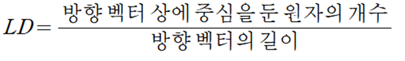 선밀도의 정의는 벡터의 단위 길이에 대한 그 벡터에 중심이 있는 원자의 개수입니다. 이를 수식으로 표현하면 다음과 같습니다.